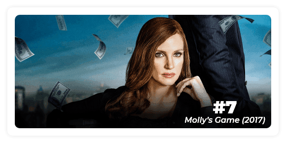 The newest film on our list, and also one of the most recognized by critics and awards ceremonies, scoring five accolades and an additional 19 nominations, most of them for its writing and direction by the legendary Aaron Sorkin (an actor and writer who made this film his impressive directorial debut). Based on the memoir of Molly Bloom (played in the film by Jessica Chastain), the movie tells the story of how she went from an injured athlete into a poker mogul who ran several underground poker tables for the rich and famous – including the mysterious Player X (Michael Cera), a sociopathic Hollywood celebrity who is allegedly based on Spider-Man actor Tobey Maguire.