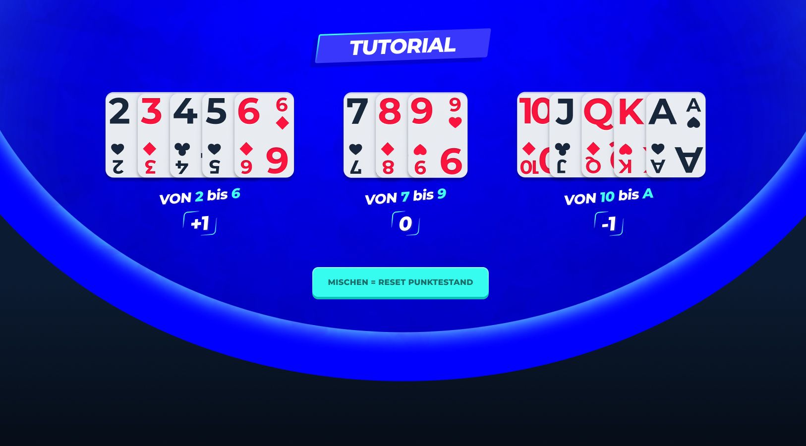 Um das Zählen zu üben, kann ich ein ganzes Kartenspiel einmal durchzählen, bis die Endzahl 0 ergibt. Je mehr ich übe, desto schneller und präziser werde ich beim Zählen.