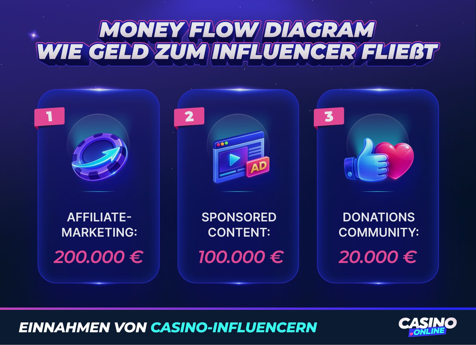 Die größte Einnahmequelle der meisten Casino-Influencer liegt im Affiliate-Marketing. Dabei erhalten sie: